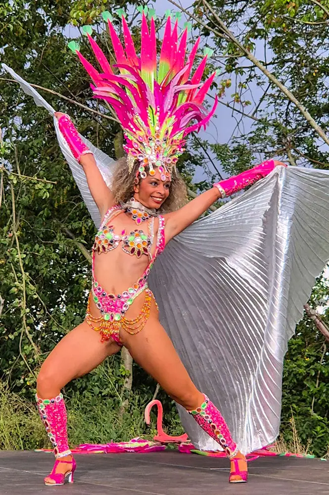 In my costumes and shows, I bring my love of ancient Greek mythology, the glittering 1920s and mysterious eroticism to life. Whether comedy burlesque, fire shows or samba fireworks – every performance is a sensual feast for the senses.
