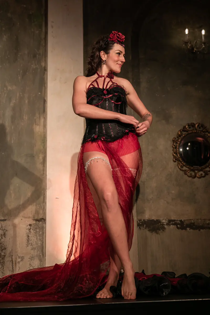 I’m Rosabelle Sélavy, a burlesque and cabaret artist from Paris. I create unique shows combining dance, contortion, aerial acrobatics, comedy, and sensual stagecraft. Experience unforgettable cabaret performances in Berlin and Paris, full of magic, glamour, and emotion.